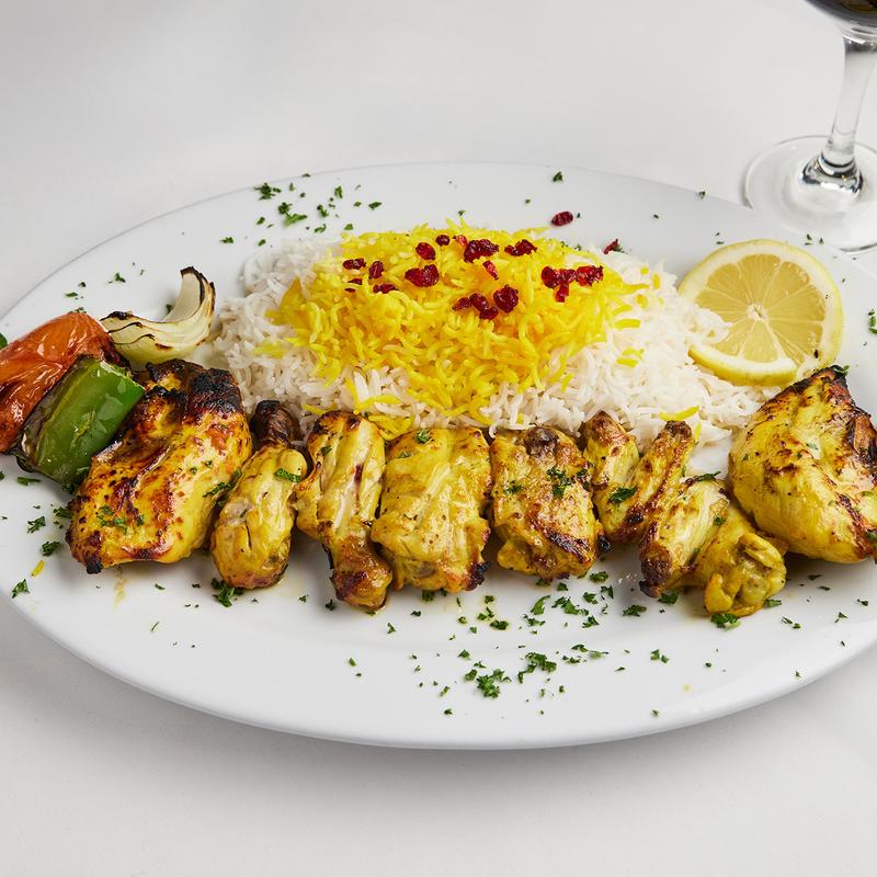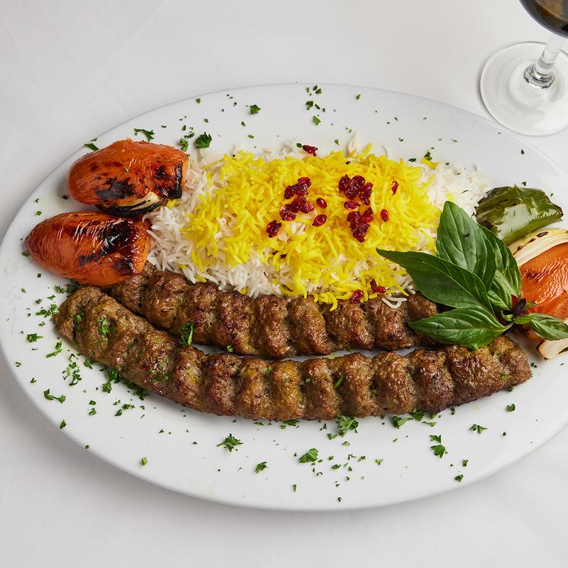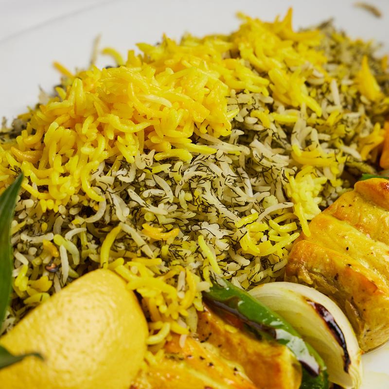 Served with Basmati rice with saffron and grilled tomato | Substitute for +$4.50 choice of: Zereshk Polo (Basmati rice with barberries and saffron), Shirin Polo (Basmati rice with almonds, raisins, orange peel, pistachio, saffron), or Baghali Polo (Basmati rice with dill weed and fava beans and saffron).